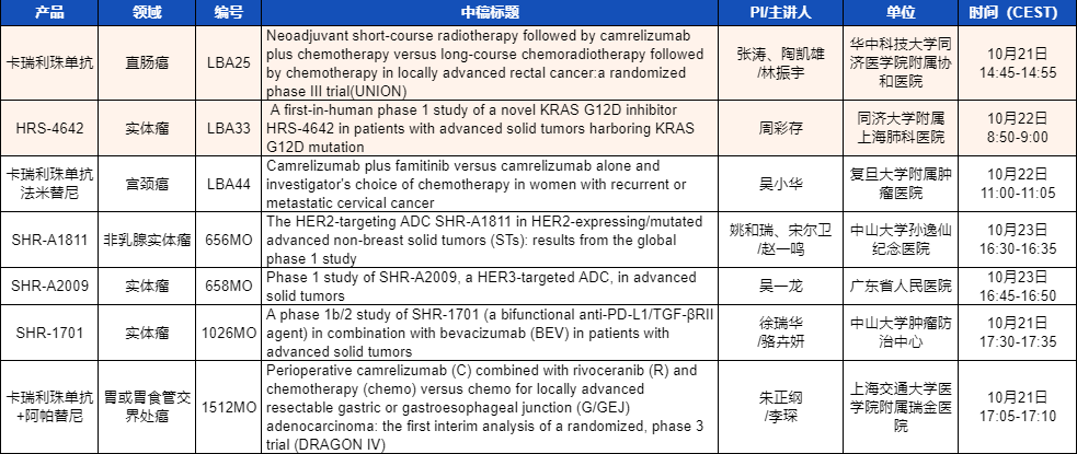 ESMO 2023 JJB竞技宝医药产品相关研究一览
