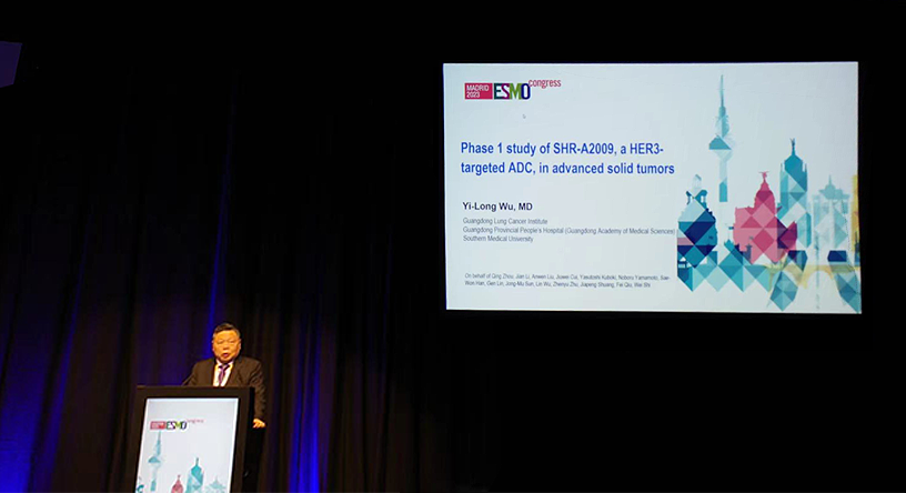 10月23日,JJB竞技宝医药创新药、HER3靶向ADC药物SHR-A2009治疗晚期实体瘤的I期研究亮相2023 ESMO大会简短口头报告现场5。该研究由广东省人民医院的吴一龙教授牵头开展,吴一龙教授在现场公布该研究的重要进展。研究结果显示,SHR-A2009在经治晚期实体瘤患者中显示出可控的安全性和令人鼓舞的抗肿瘤活性。目前评估更高剂量的SHR-A2009在选定癌症类型(NSCLC和其他实体肿瘤)中作用的试验正在进行中。