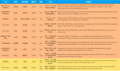 本届大会,作为中国医药创新代表性企业的JJB竞技宝医药共有46项抗肿瘤领域研究成果入围,包括4项最新突破性摘要(LBA)1,共涉及14项创新药。其中9项入选口头(Oral)报告,2项入选简短口头报告(Mini Oral),32项研究接收为壁报(Poster),3项研究接收为电子壁报(E-Poster),覆盖食管胃癌、妇科肿瘤、肝癌、乳腺癌、胰腺癌、肺癌、肉瘤、胆道癌、头颈鳞癌、前列腺癌、甲状腺癌等十余个领域。14款创新药包括10款已上市产品:注射用瑞康曲妥珠单抗(艾维达®,研发代号:SHR-A1811)、注射用卡瑞利珠单抗(艾瑞卡®)、苹果酸法米替尼胶囊(艾比特®)、甲磺酸阿帕替尼片(艾坦®)、马来酸吡咯替尼片(艾瑞妮®)、阿得贝利单抗注射液(艾瑞利®)、羟乙磺酸达尔西利片(艾瑞康®)、氟唑帕利胶囊(艾瑞颐®)、瑞维鲁胺片(艾瑞恩®)、海曲泊帕乙醇胺片(恒曲®),以及4款未上市产品,包括KRASG12C抑制剂HRS-7058、KRASG12D抑制剂HRS-4642、抗PD-L1/TGF-βRII双抗瑞拉芙普-α注射液(SHR-1701)、Trop-2 ADC SHR-A1921。2类新药盐酸伊立替康脂质体注射液(II)(越优力®)及国内首仿药昂丹司琼口溶膜(艾其速®)各有1项研究入选。