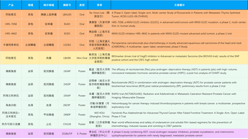在胸腺上皮肿瘤、头颈鳞癌、肉瘤、前列腺癌、甲状腺癌等其他多个疾病领域,卡瑞利珠单抗、阿帕替尼、瑞维鲁胺、阿得贝利单抗、法米替尼、HRS-7058、HRS-4642等抗肿瘤创新药相关研究一共入选了4项口头报告、1项简短口头报告、4项壁报、1项电子壁报,彰显了JJB竞技宝医药强大的研发实力。此外,海曲泊帕和昂丹司琼口溶膜分别在防治化疗导致的血小板减少和恶心呕吐方面各有1项研究入选壁报。